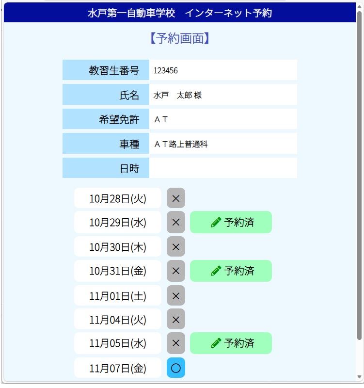 水戸第一自動車学校 インターネット予約 操作方法